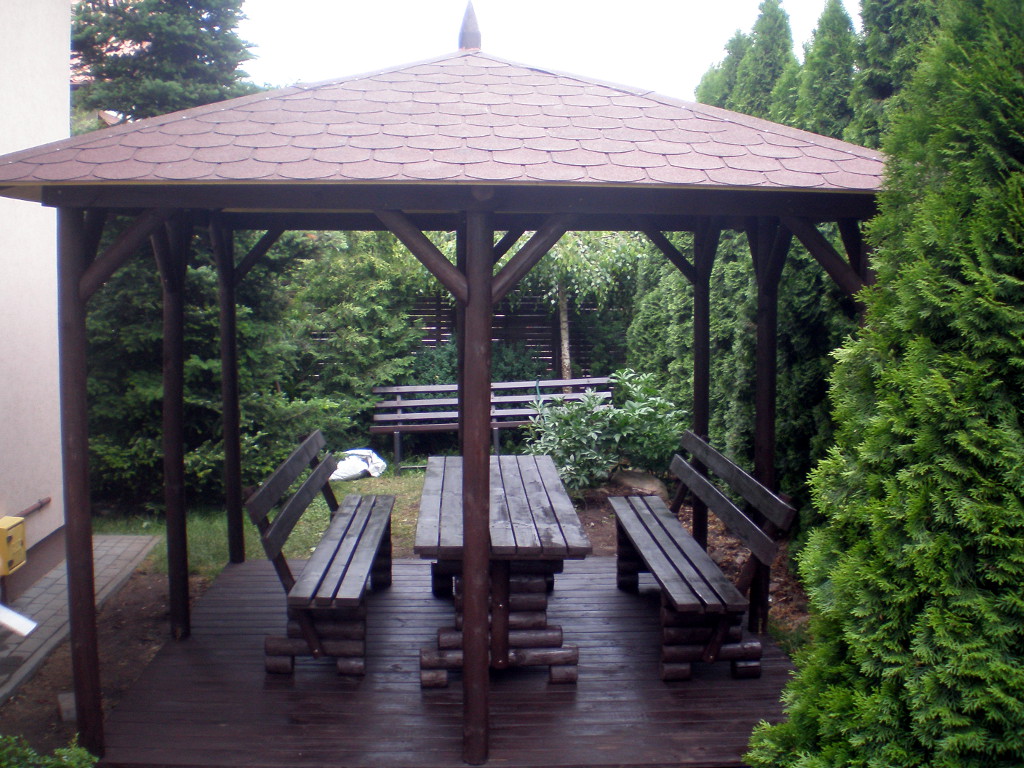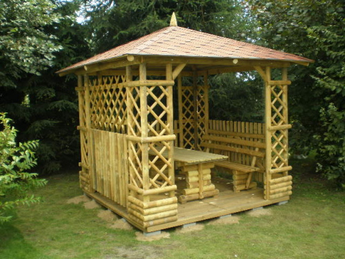 Altana czterokątna Family Wymiary: 350 x 350 x 300 cm Stół dł. 220 cm + 2 Ławy dł. 220 cmna życzenie możliwe inne wymiary | ||